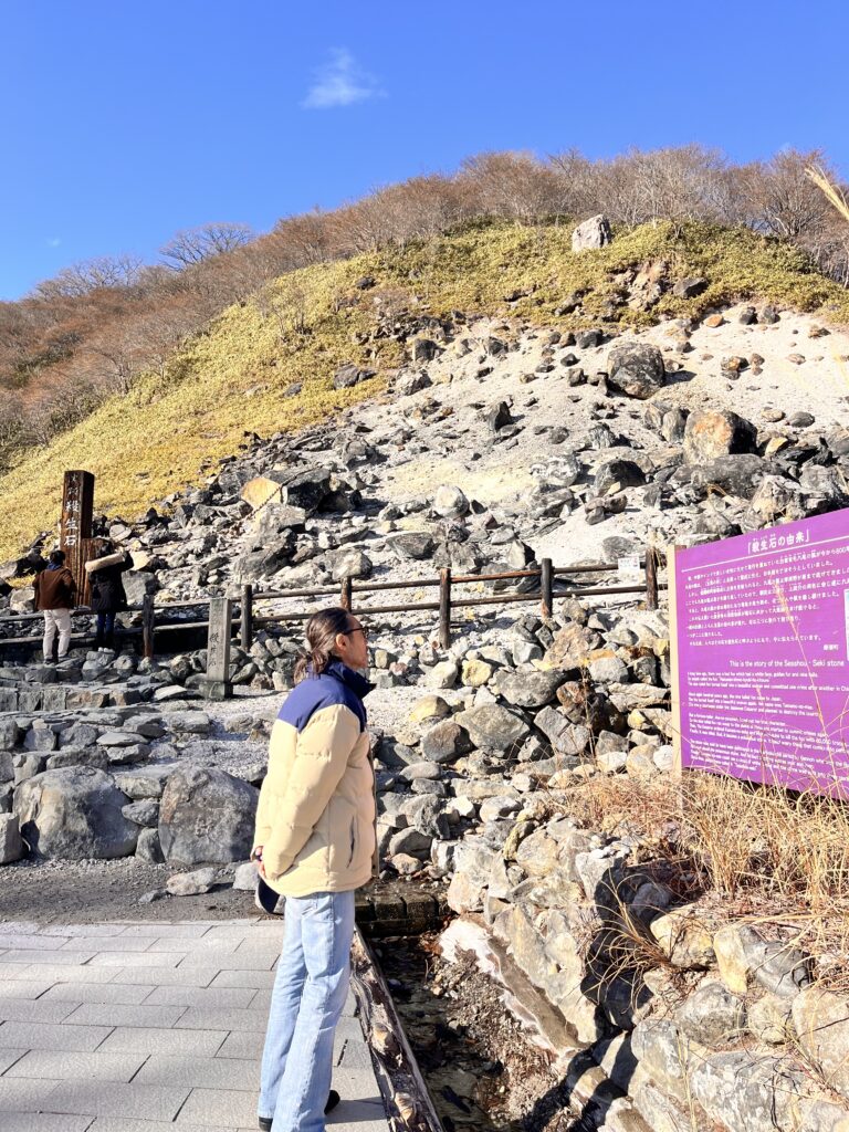 お隣の「殺生石」で九尾の狐さんも参拝