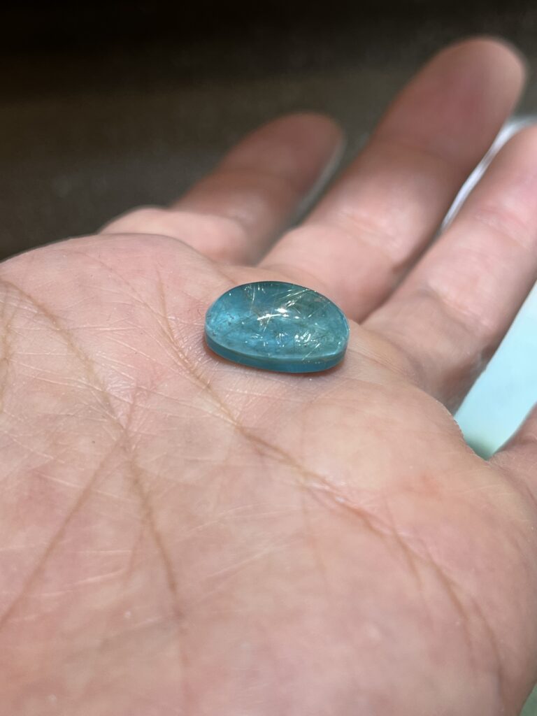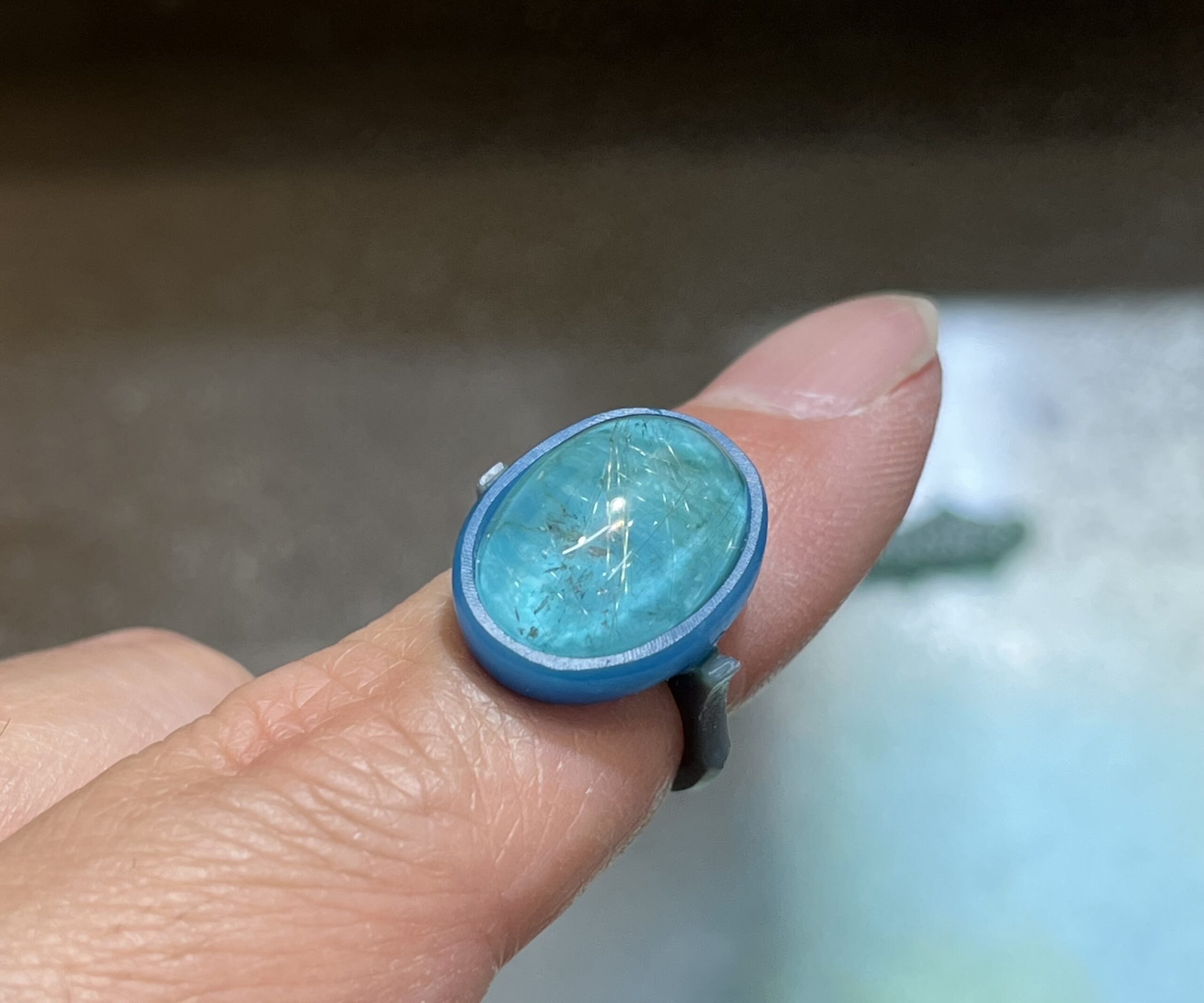 ルチルクォーツの底面にターコイズが貼ってある石