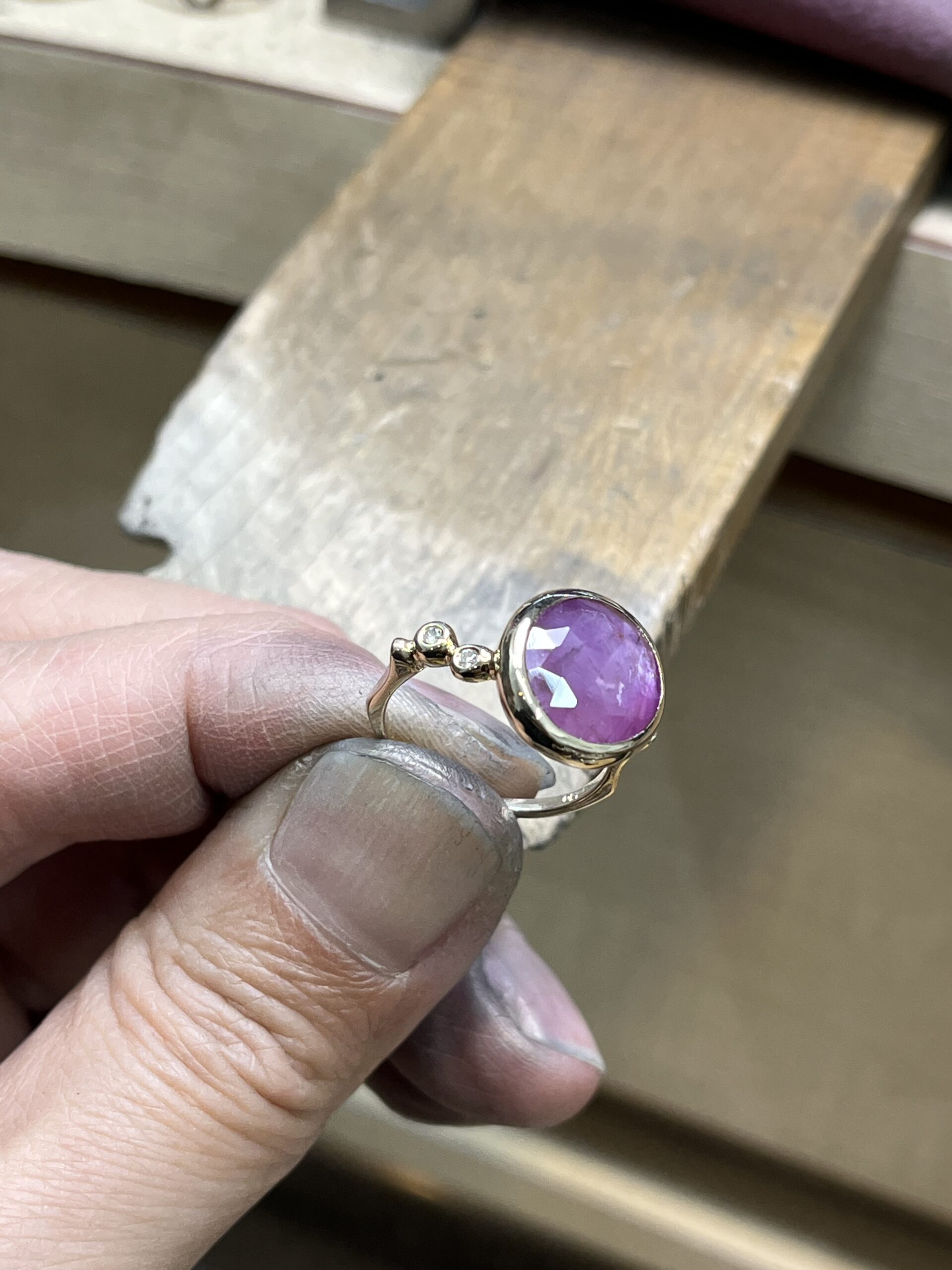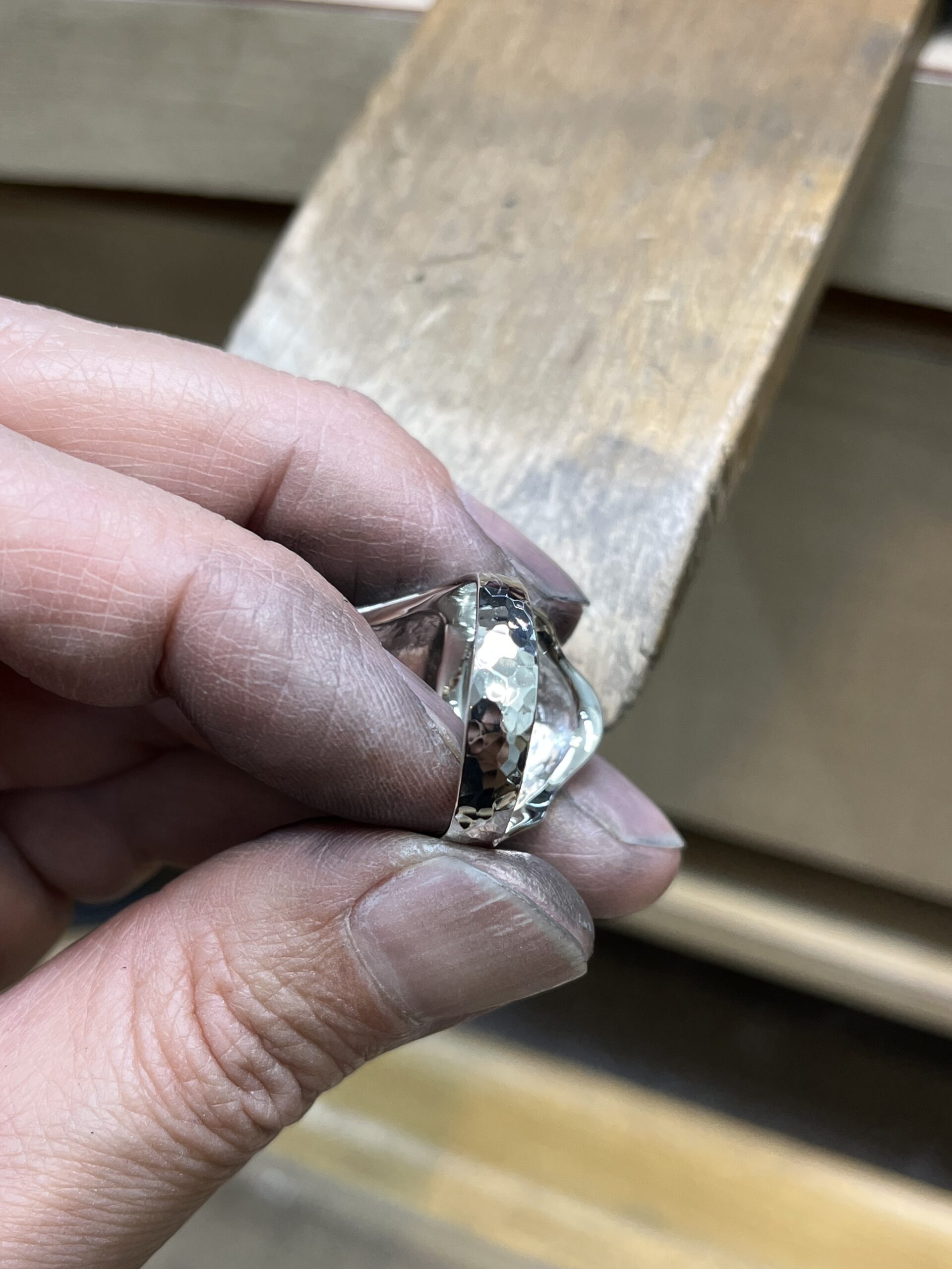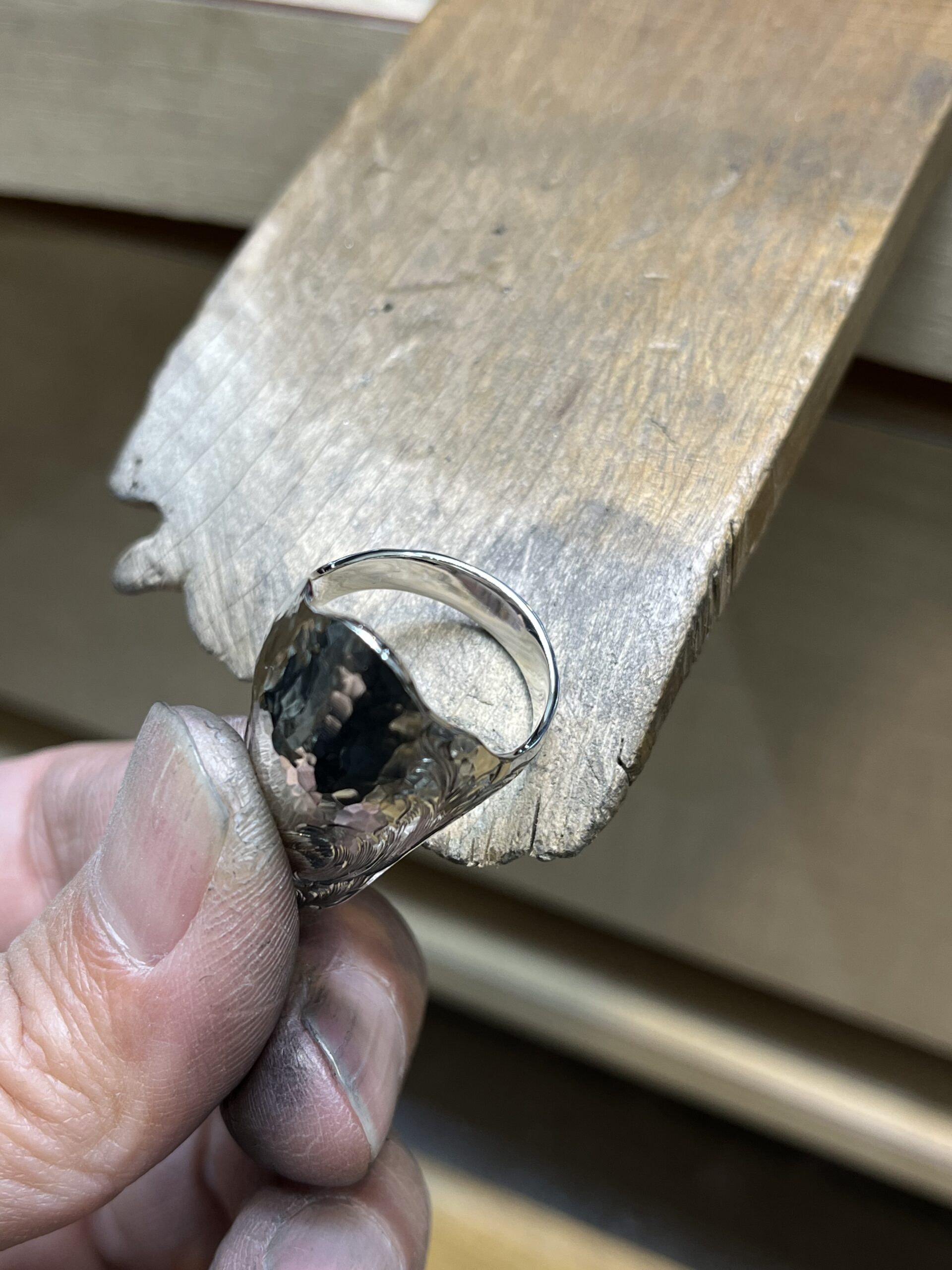 指輪の外側は叩いて馴染ませます