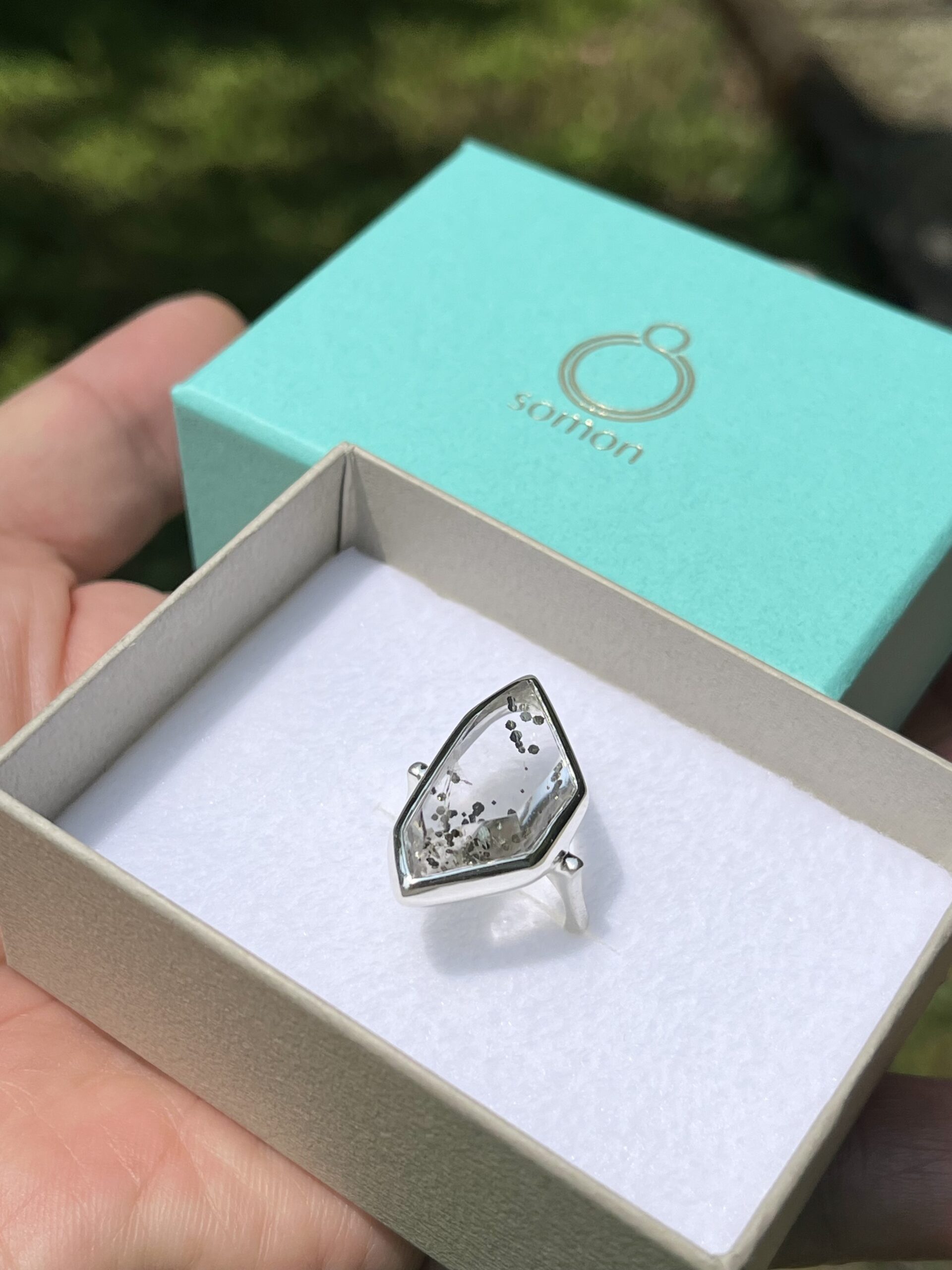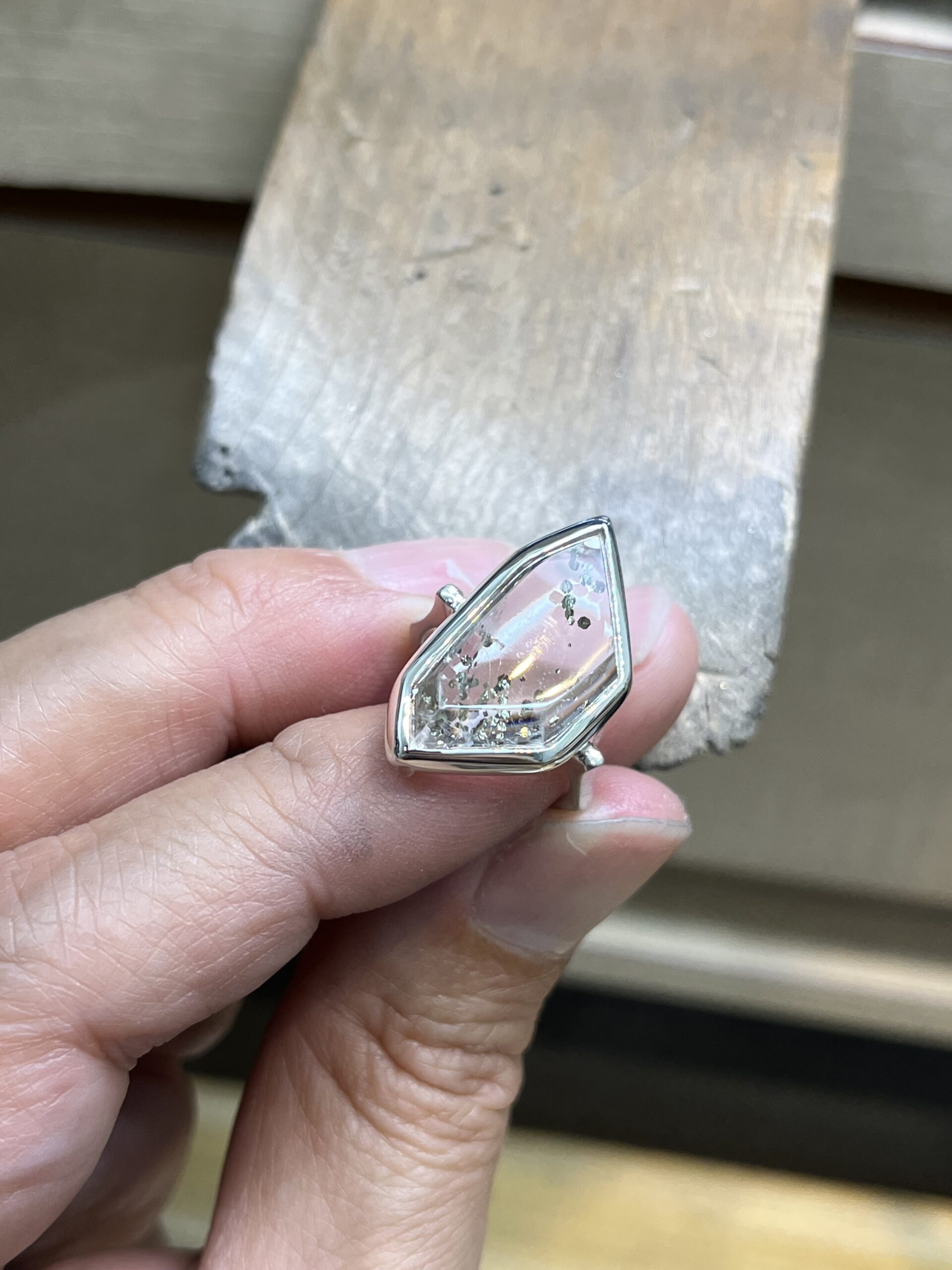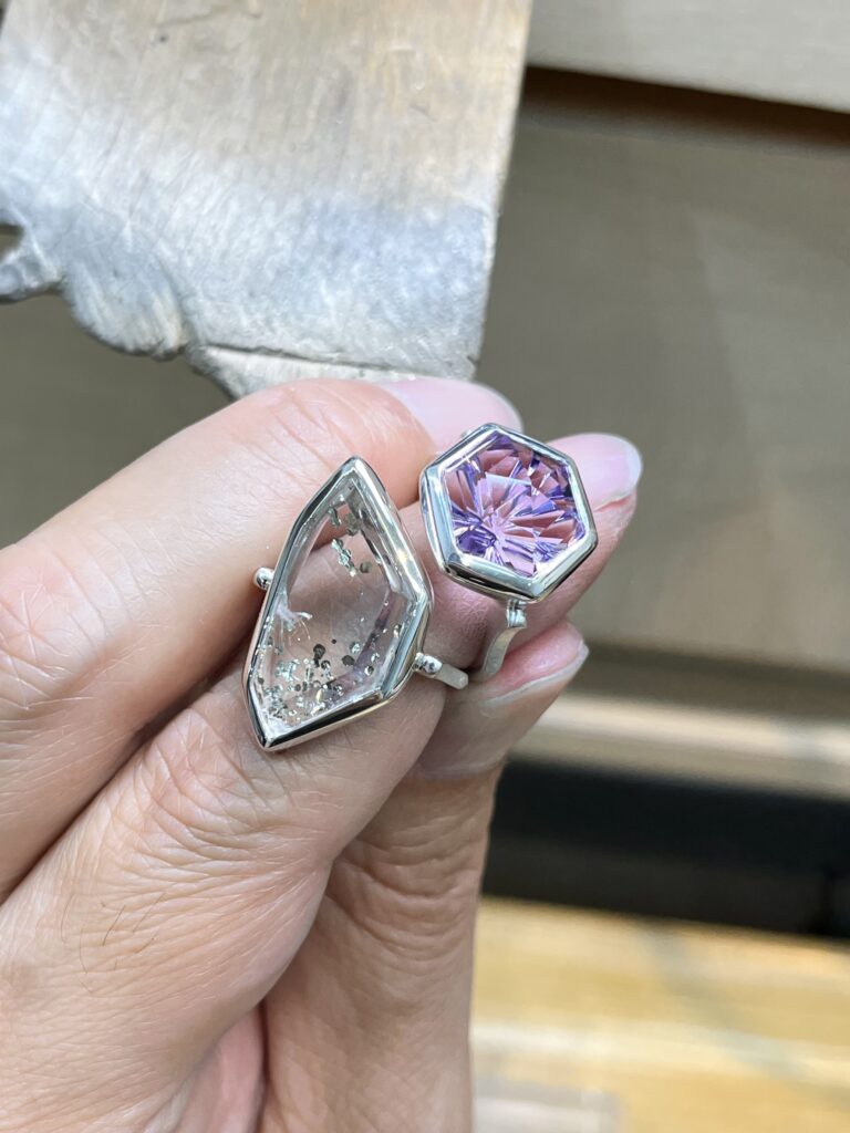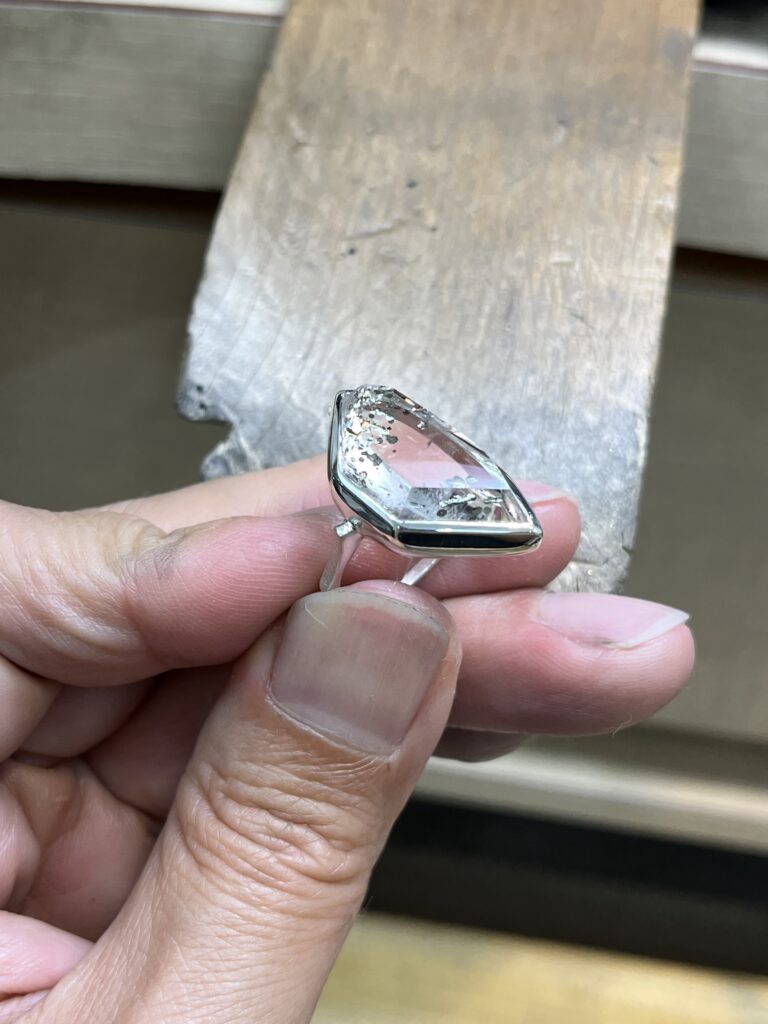 (爪留めなど石が外せるものは石を外して溶接できますが、ソモンの作品は覆輪留めなので石が外せないため溶接不可)