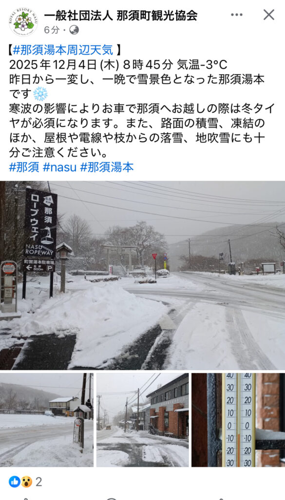 山から離れている大田原市がこれだけ積もってると(軽トラ)
