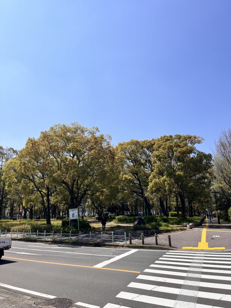 5番出口から少し歩くと公園があります、この公園の向こう側に吹上ホールがあります。思ったより近いし、歩くのが気持ちいいですね。