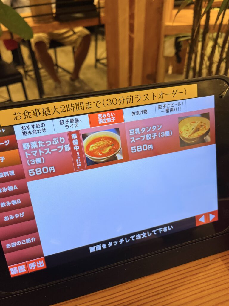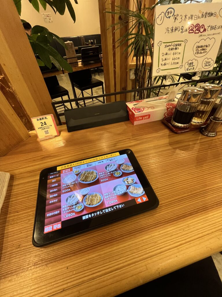 各席にタッチパネルだし