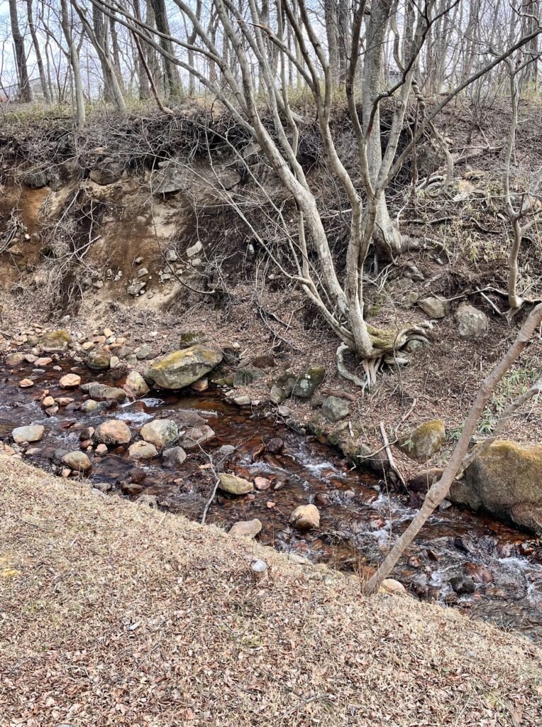 アトリエの隣の川は水が途切れることはありません