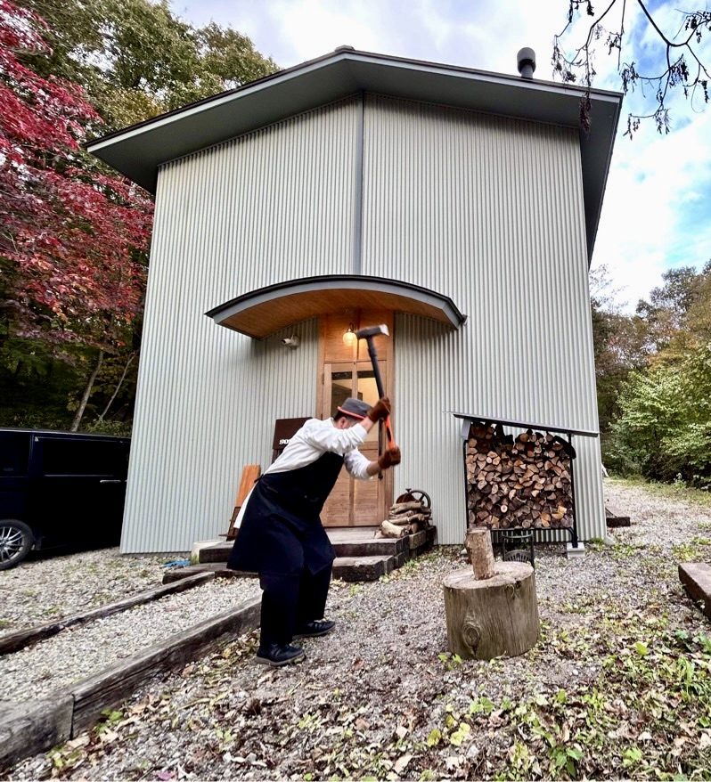 いつもこの辺で薪を割ります