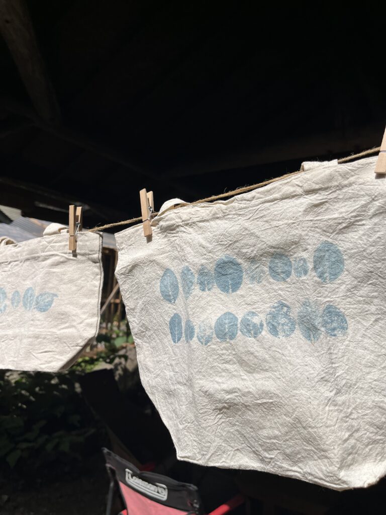 藍蓼(あいたで)の葉っぱを直接布に押し当てて