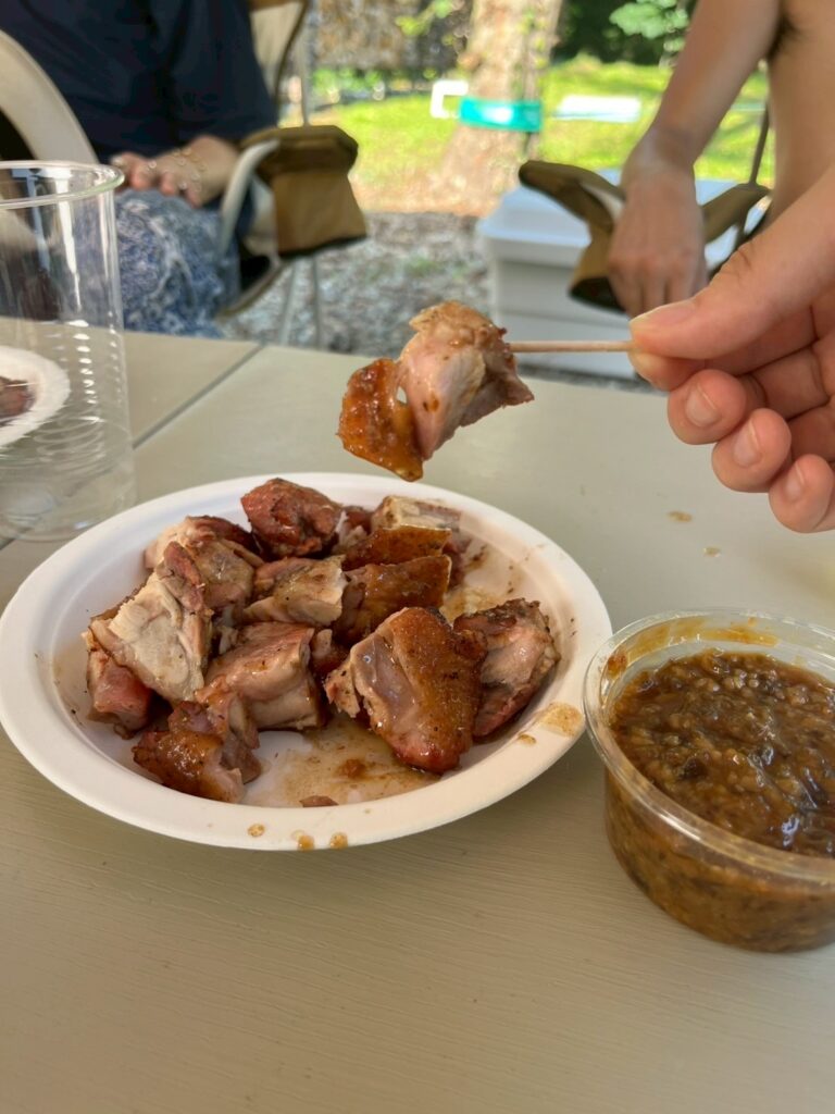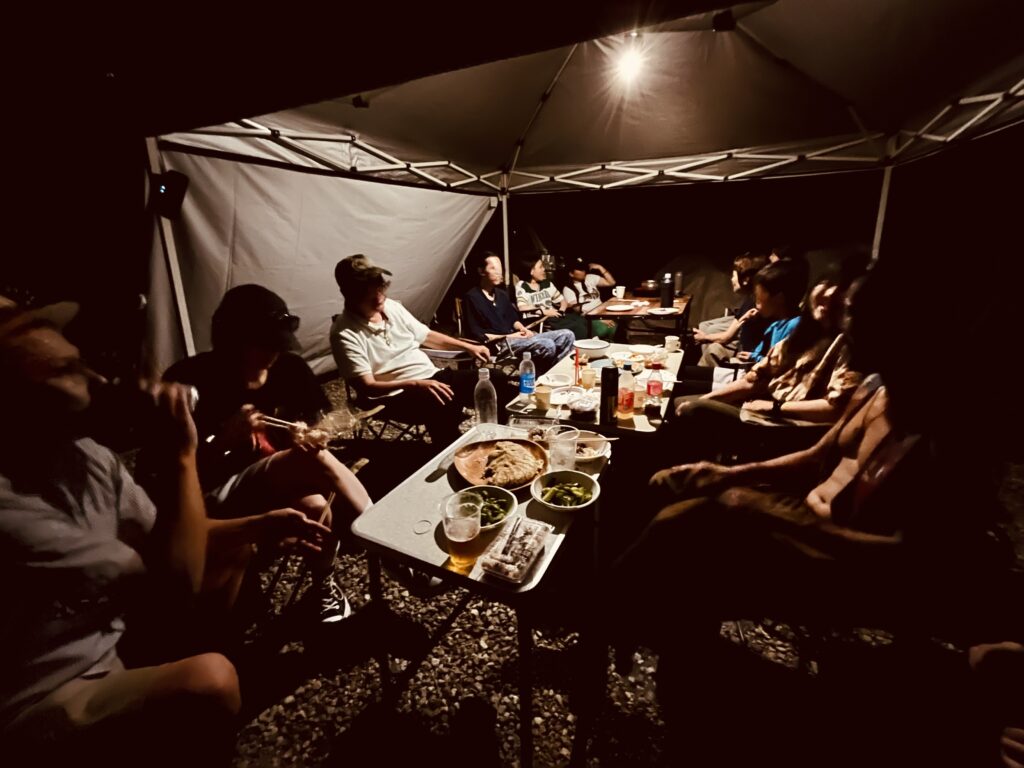 お客さんとみんなで外でご飯を楽しんでましたけど