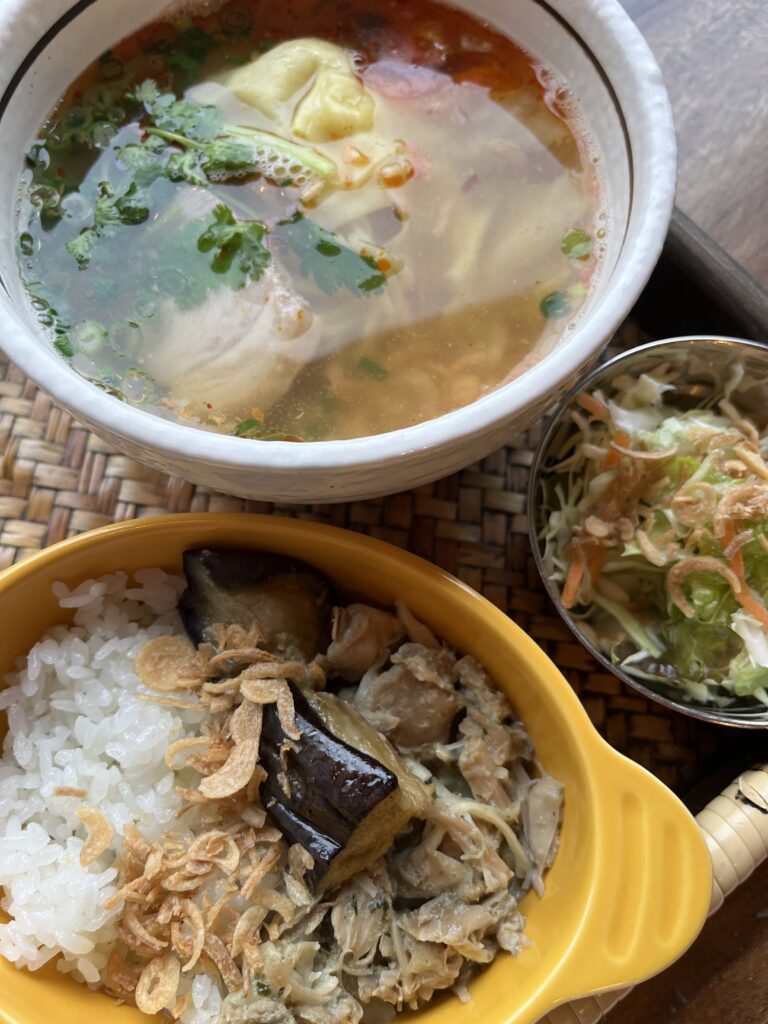 写真はタイラーメンとグリーンカレーのセット