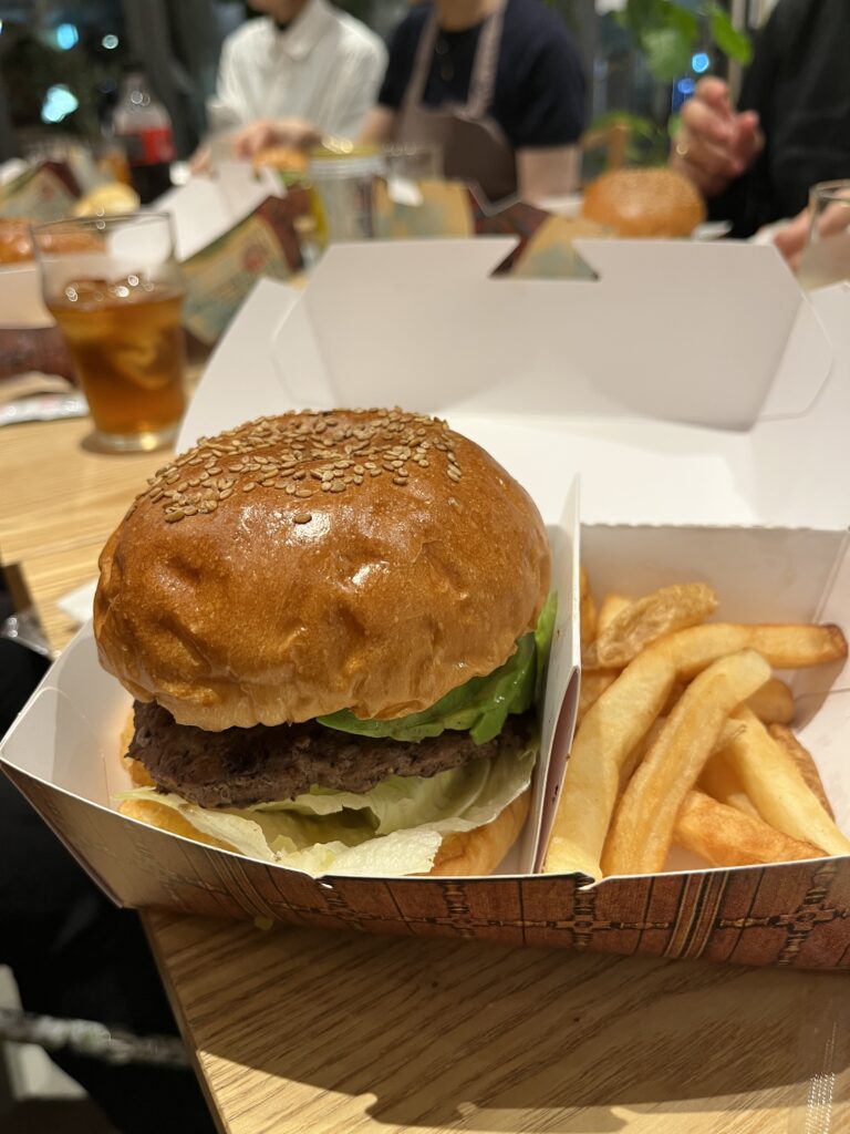 今日は会場で打ち上げ🚀なんとヒラオケイコさんの誕生日!✨✨近所の有名なハンバーガー屋さんで注文した🍔🍟とビールで乾杯!!