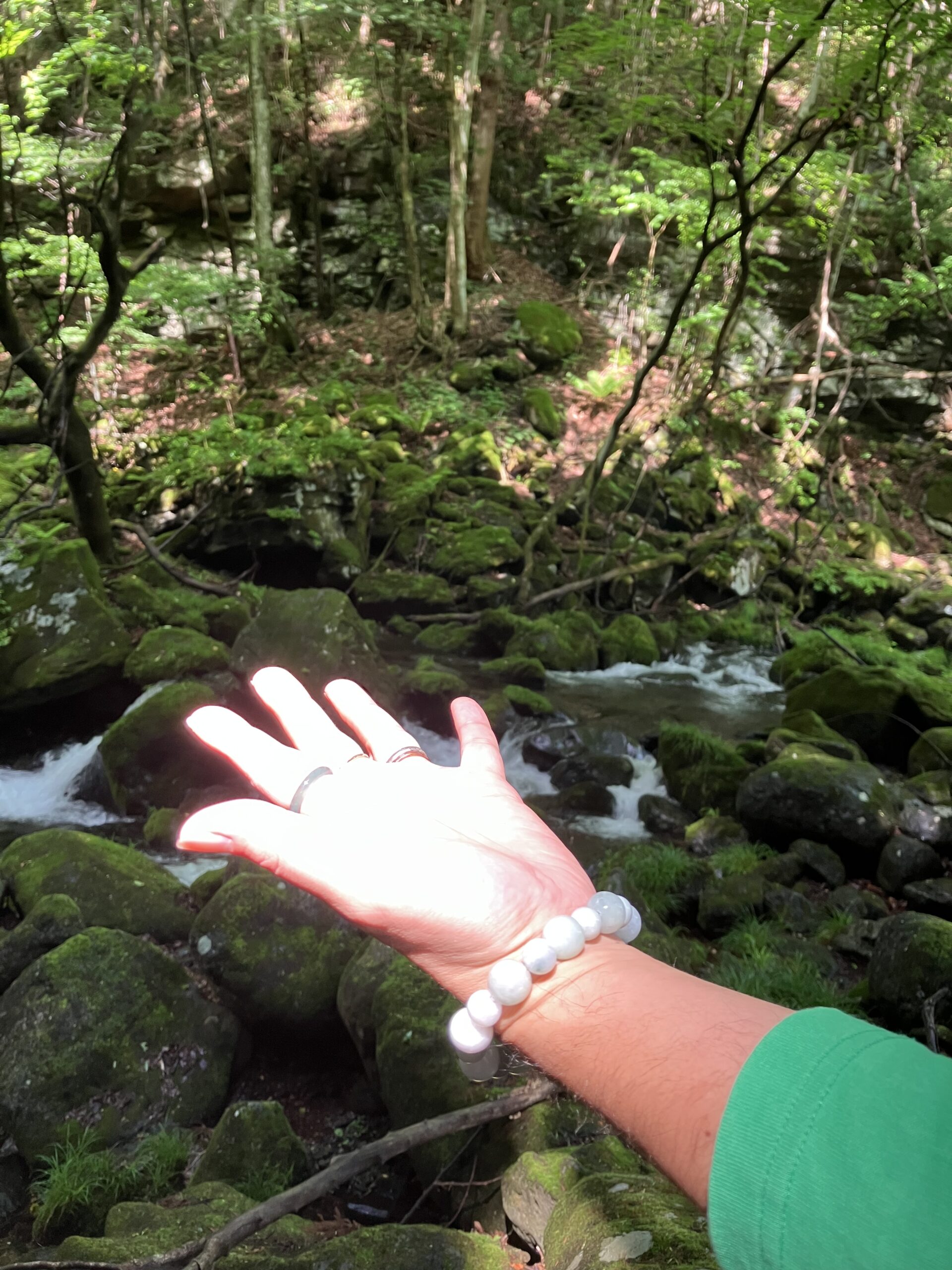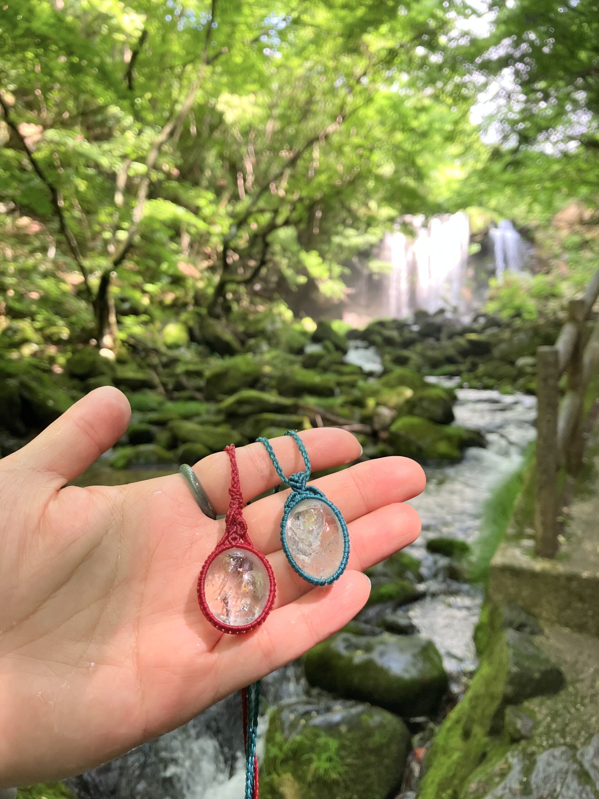いつも身につけている御守りの水晶を川でしゃぶしゃぶ