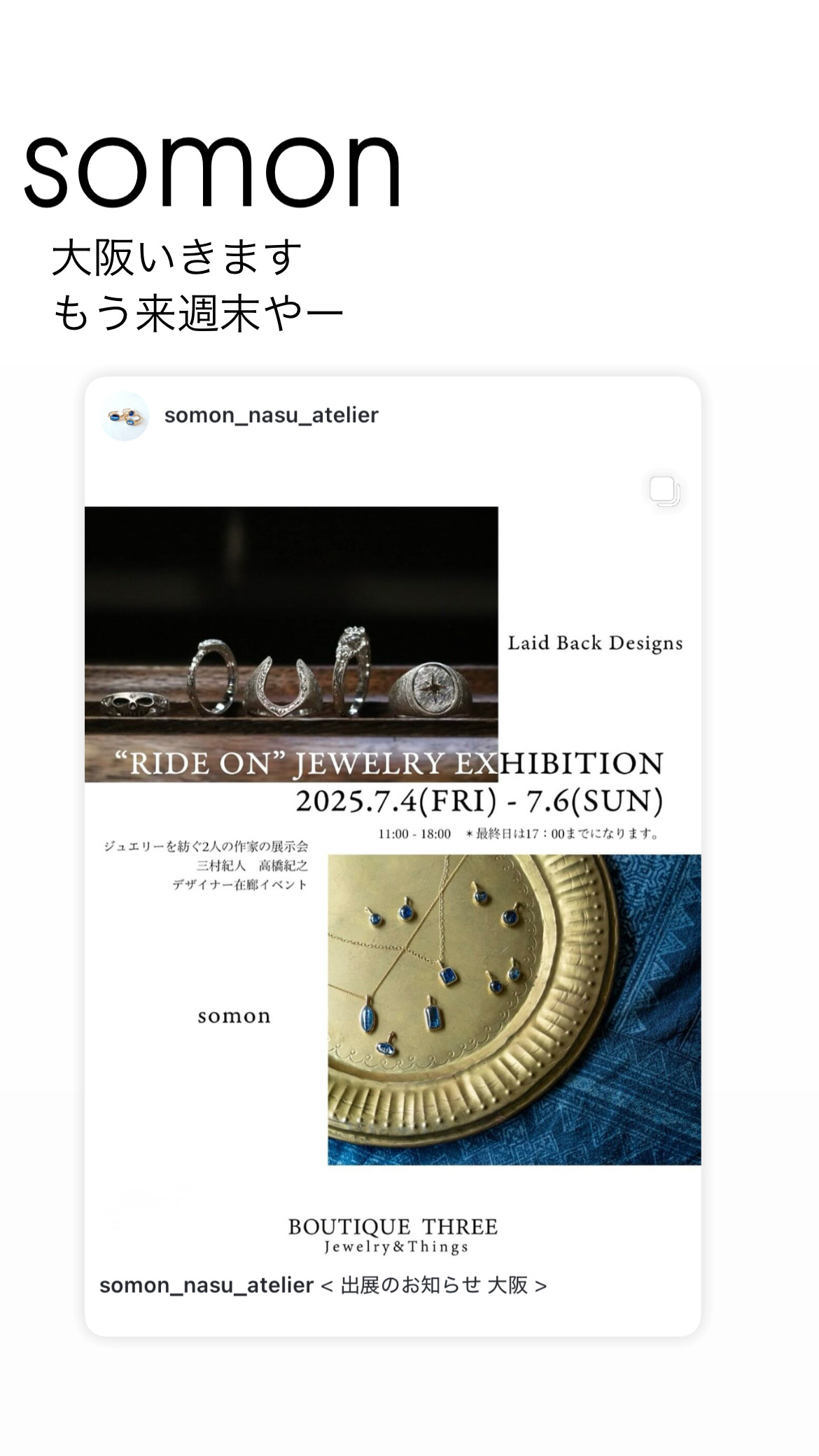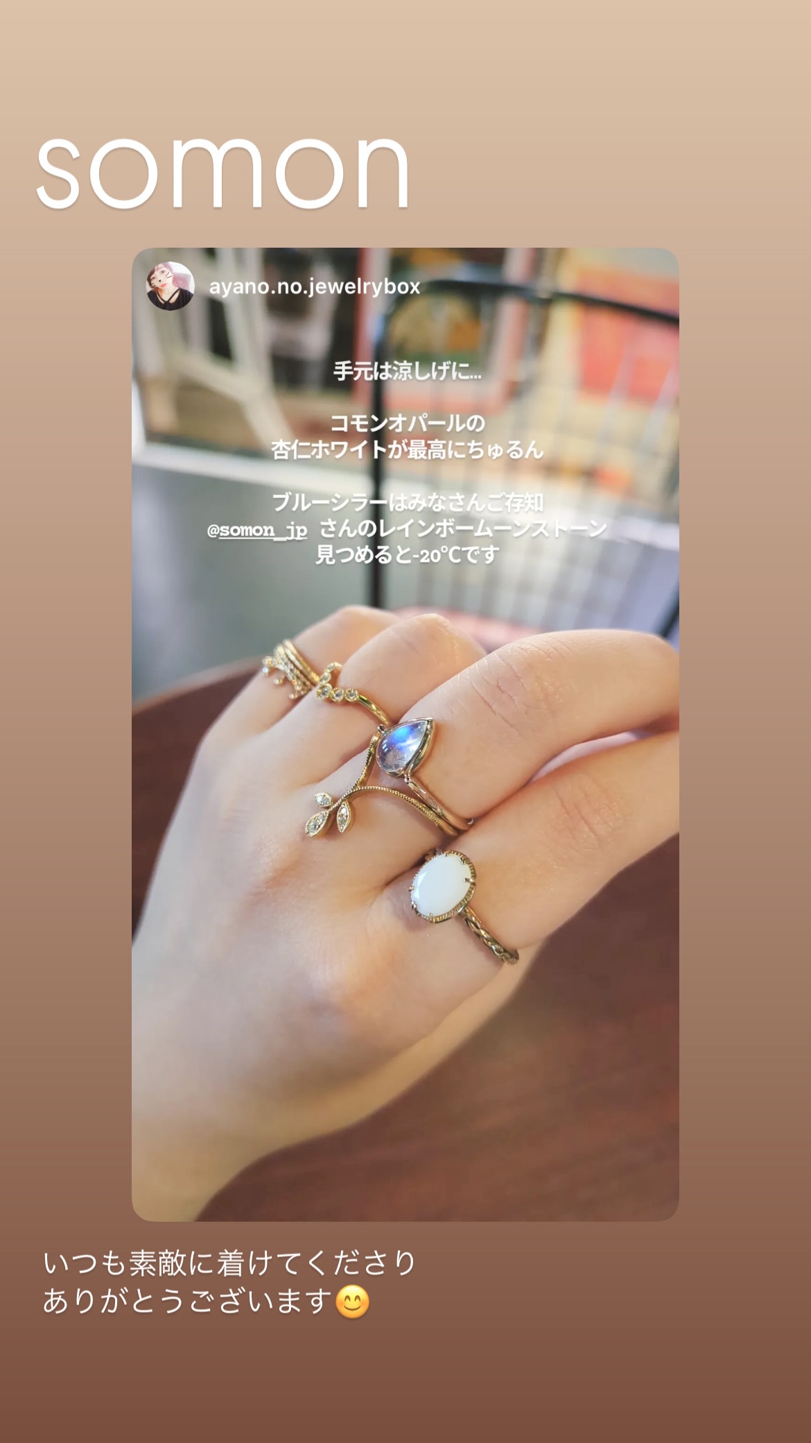 いつも美しいコーディネートの中にsomonの指輪を入れてくれて嬉しい