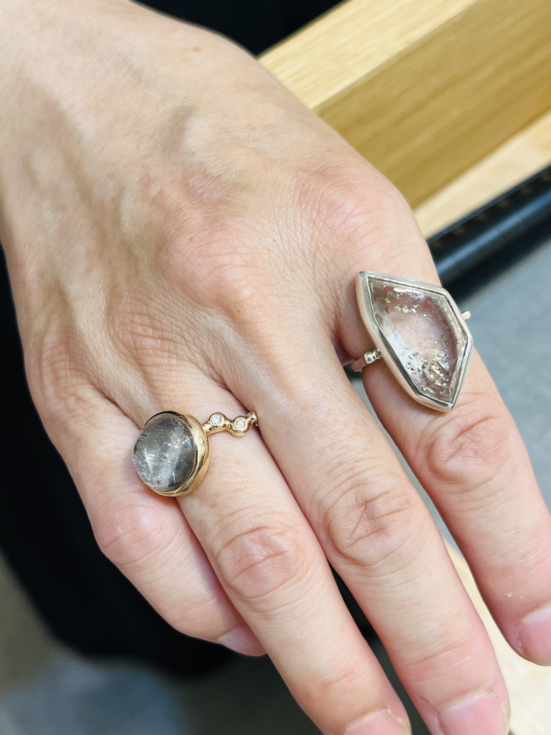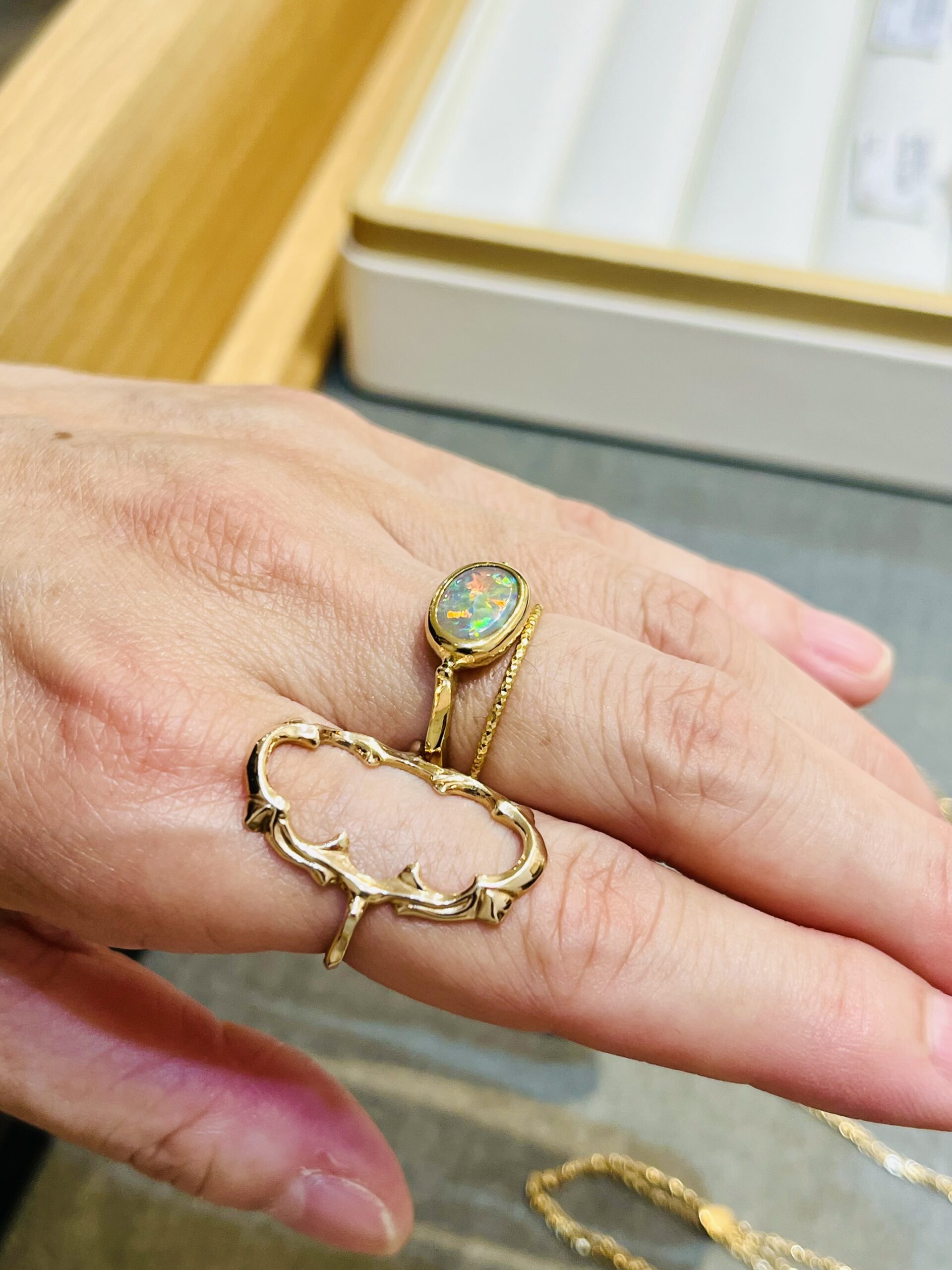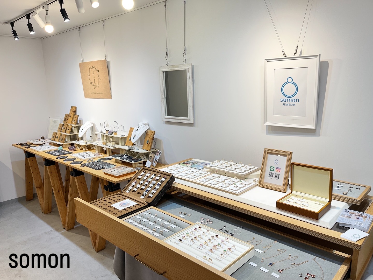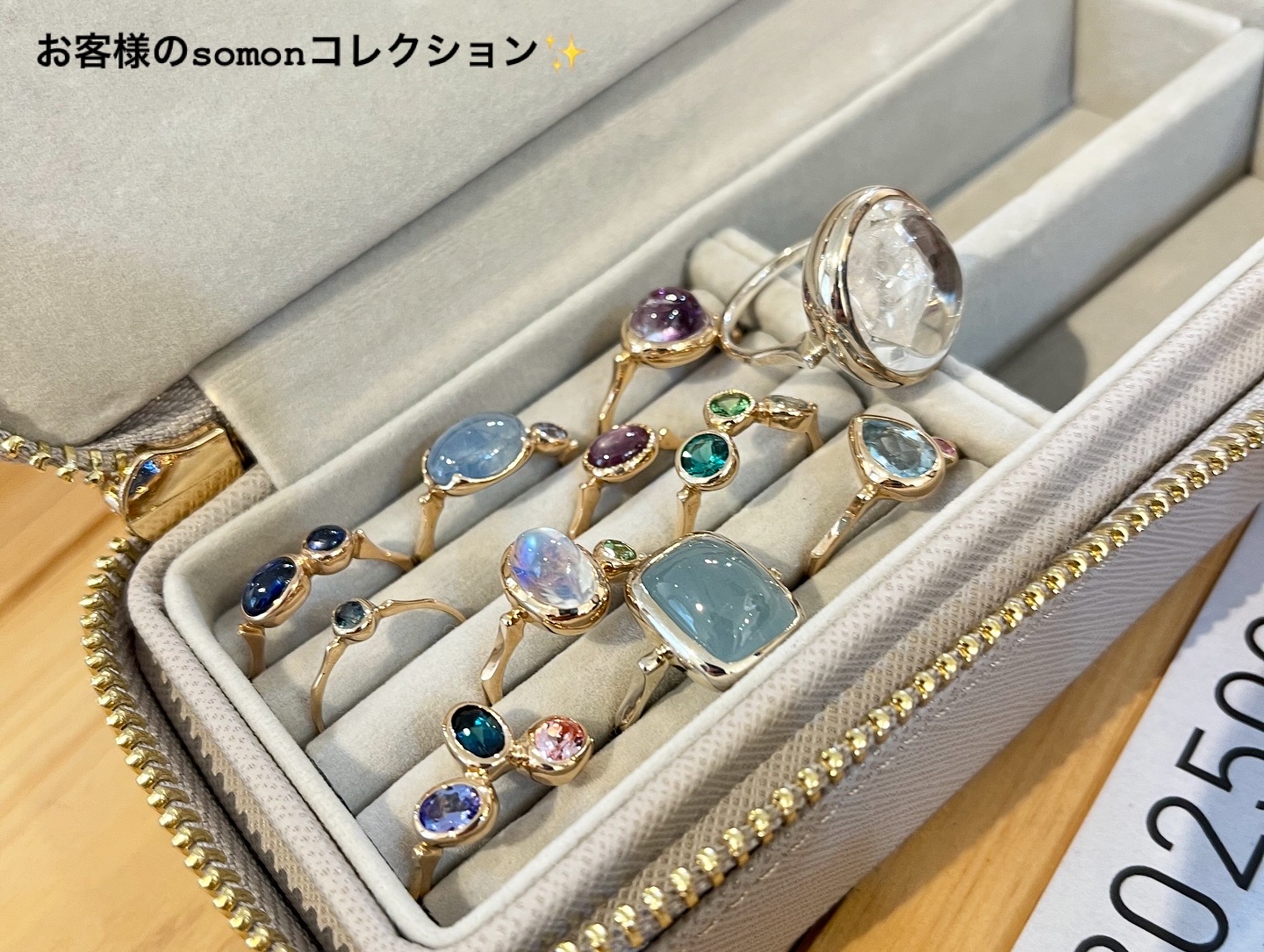 初日にお越しくださいましたお客様のsomonコレクション😊最初にお越しくださったのは新宿LUMINEの POPUP。その後、毎回のソモン展にお越しくださいまして、コツコツとコレクションを増やしていただきありがたや(その他にペンダントも数点と身につけてくださってたアイテムも)